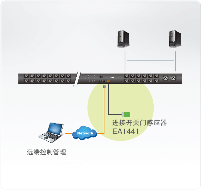 為了數(shù)據(jù)中心的安全性,ATEN提供了進接開關(guān)門感應器可與電源分配器(PDU)搭配使用,可監(jiān)控機架的門是否被開啟,當門被開啟時會發(fā)出警示信息給管理員,也可通過客制化的設定,搭配警報器以監(jiān)控環(huán)境狀況。